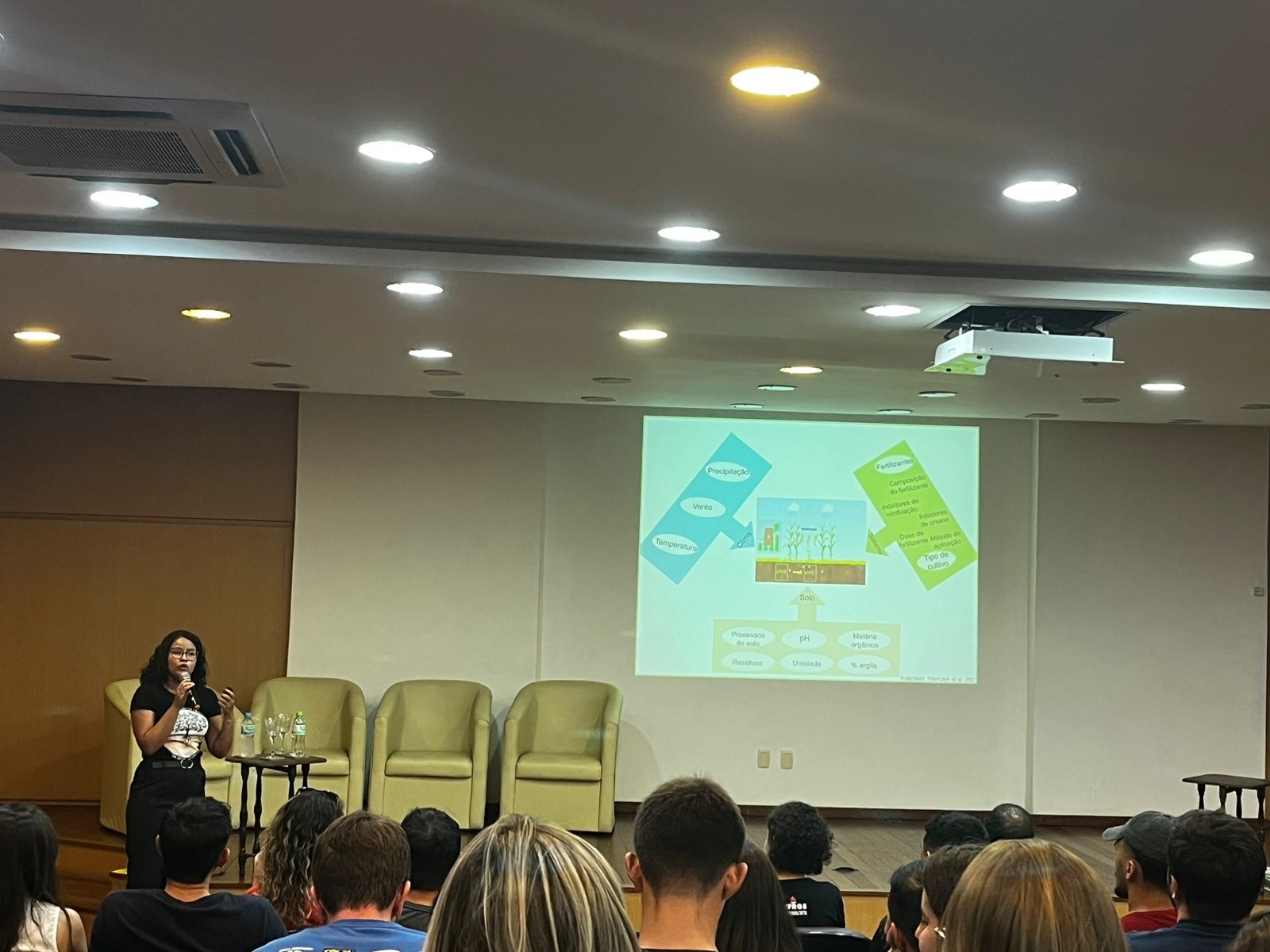 Durante o Ciclo de Palestras , pesquisadores discutiram questões relacionadas ao carbono do solo e aos gases do efeito estufa. O evento contou com a presença do Pesquisador João Pedro Flores, Engenheiro Agrônomo (UFSM) e Mestre em Ciência do Solo (UFRGS), Jonathas Johnson, Engenheiro Agrônomo (UFRGS), mestre em Ciência do Solo pelo PPGCS (UFRGS), Cinthya Vasconcelos, Engenheira Agrônoma (UEMA) e mestranda em Ciência do Solo (UFRGS), além do renomado Cimélio Bayer, pesquisador e professor do programa de pós-graduação em Ciência do Solo (UFRGS).